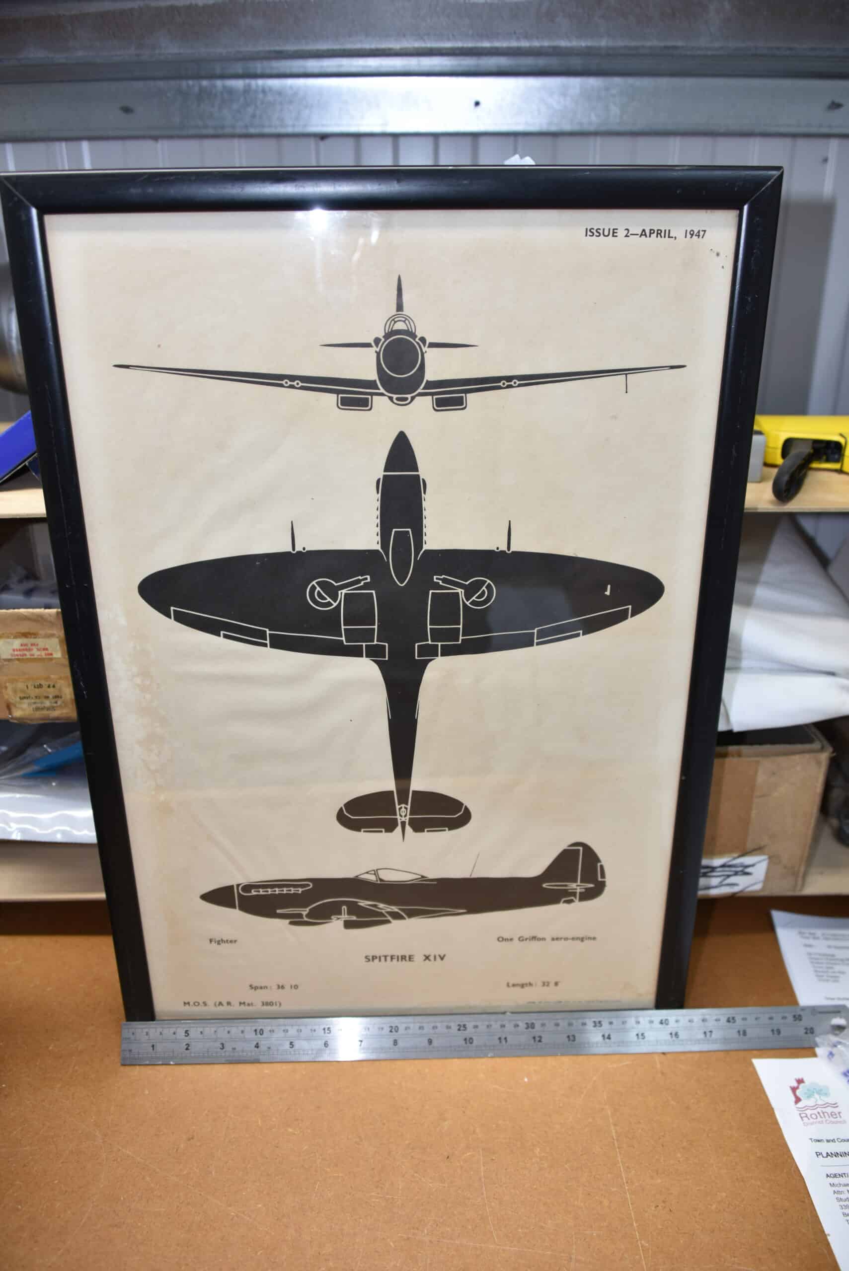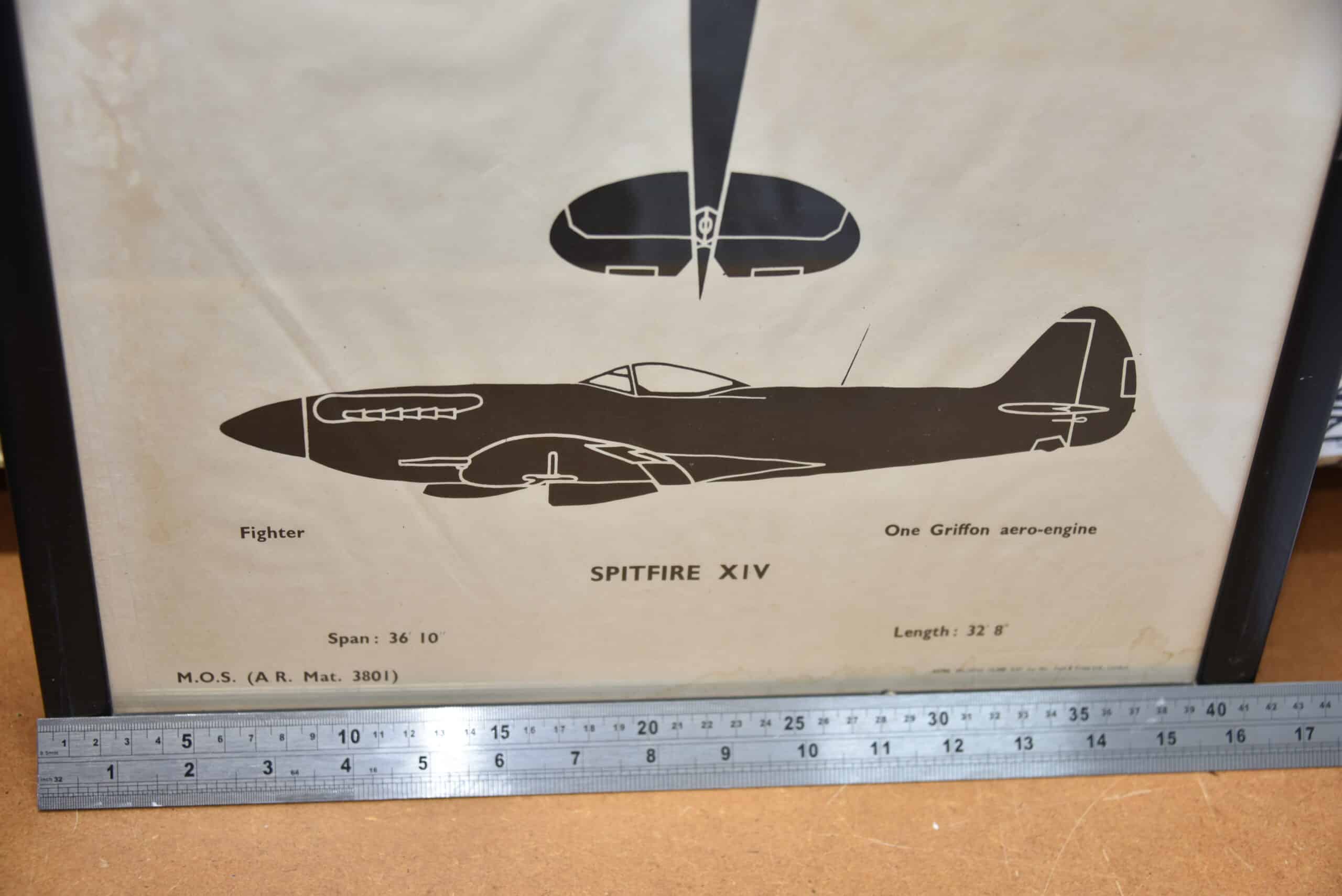 This is an original framed poster of a Mk XIV Supermarine Spitfire printed by Fosh & Cosh ltd
